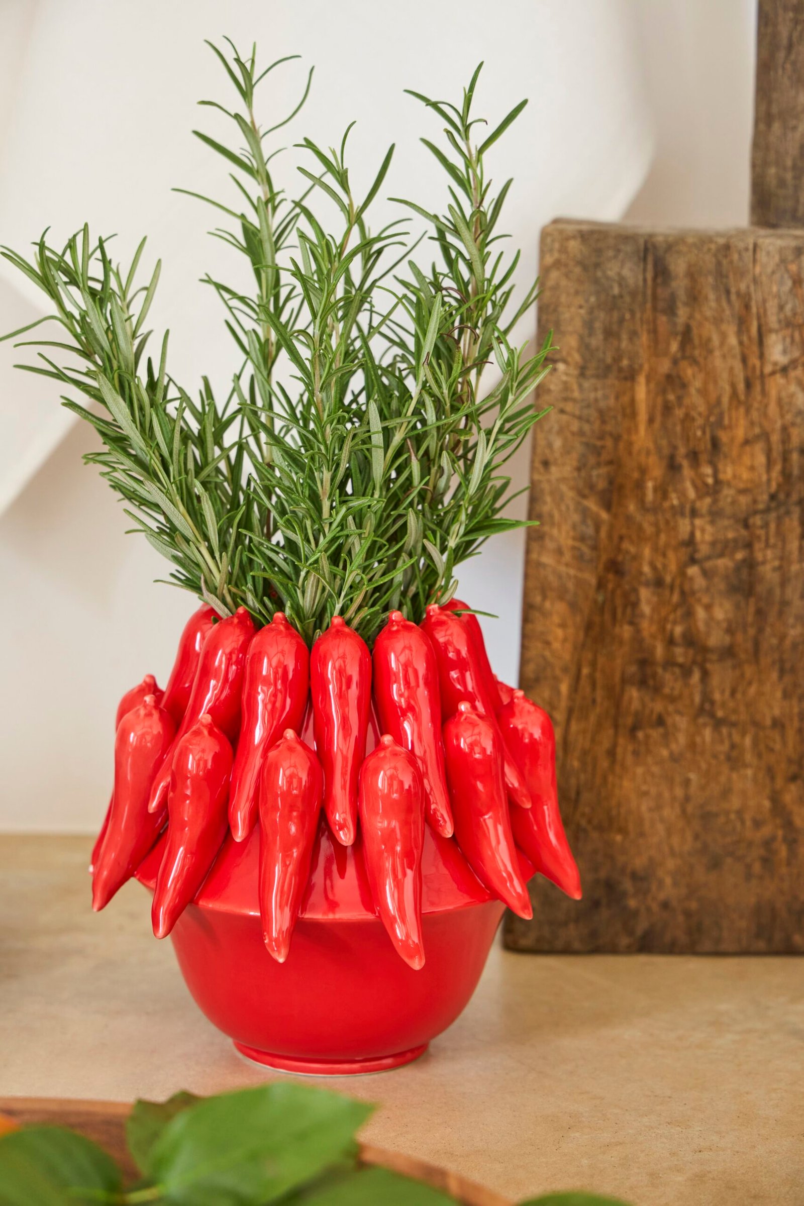 Nuostabaus grožio, išskirtinio dizaino keramikinė vaza su paprikomis. Nors ir ryški, tačiau tiks bet kokiame interjere ir taps tikru namų akcentu. Gamintojas – YLIADES, iš Prancūzijos.