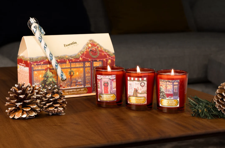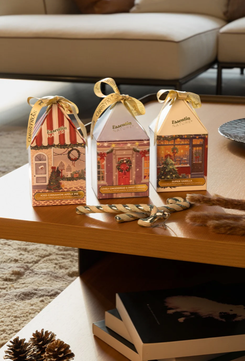 Sukurkite šventinę nuotaiką savo namuose su išskirtiniu Essentia Nature žvakių rinkiniu „The Scented Village“. Trys kvapnios sojų vaško žvakės dailiose šventinio miestelio stilistikos pakuotėse ne tik pripildys jūsų namus jaukumo, bet ir taps dekoratyvia šventine detale. Kiekviena žvakė skleidžia šiltą, malonų aromatą, kuris sukuria harmoningą ir raminančią atmosferą tamsiais rudens bei žiemos vakarais.